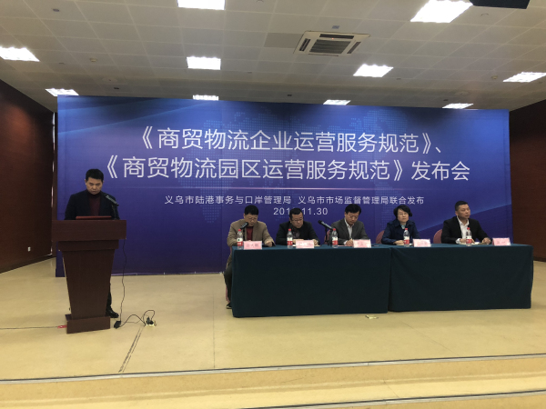 11月30日,《商貿物流企業(yè)運營(yíng)服務(wù)規范》、《商貿物流園區運營(yíng)服務(wù)規范》發(fā)布會(huì )在市國際博覽中心舉行。陸港集團作為規范起草單位,在會(huì )上作表態(tài)發(fā)言,倡導義烏物流園區運營(yíng)方、義烏物流企業(yè)切實(shí)落實(shí)兩個(gè)標準,為義烏物流轉型升級添磚加瓦。